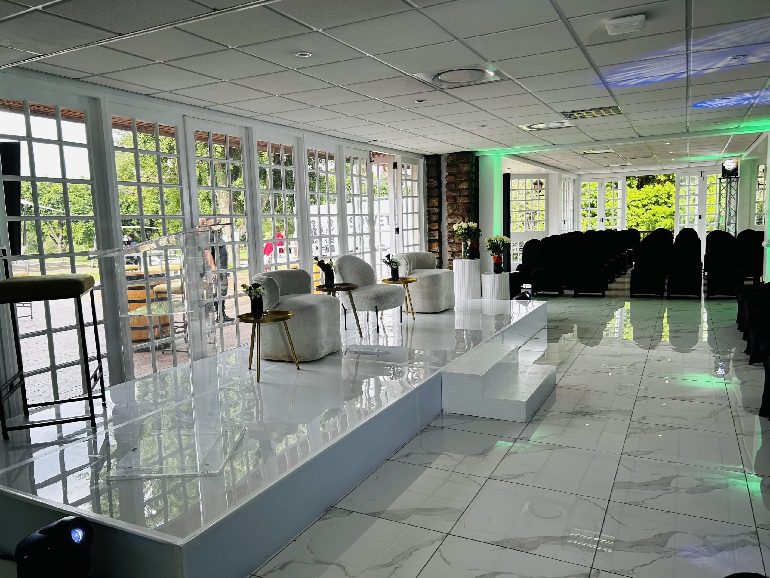 Looking for a venue that combines natural beauty with elegance? The Gazebo Room at KCC offers an idyllic setting with panoramic views of the 18th hole, making it a perfect location for intimate weddings, receptions, corporate meetings, or social gatherings. Overlooking serene water features and surrounded by lush greenery and birdlife, this venue is truly a haven of peace in the heart of Johannesburg.